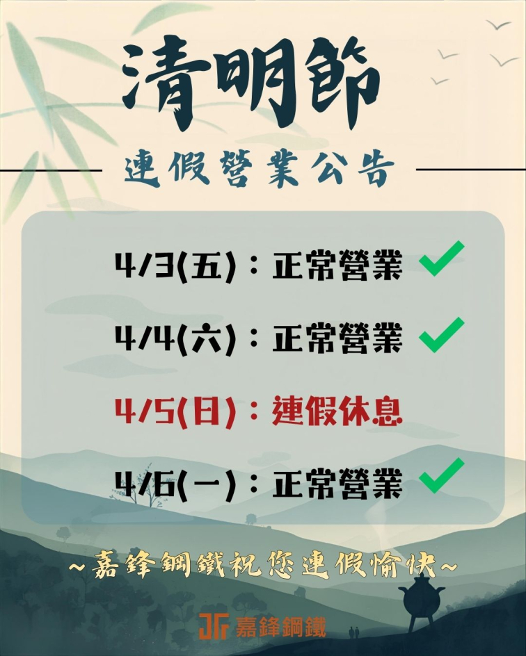清明連假嘉鋒服務不打烊